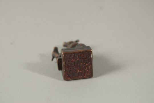 A SMALL BRONZE SEAL, TWO DEER.