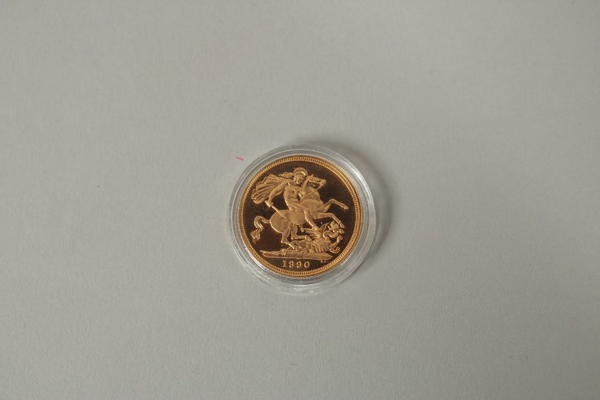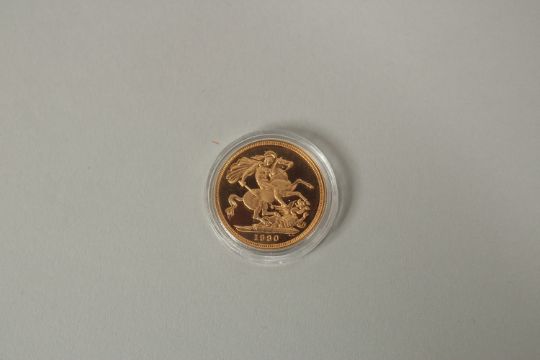 1990, A FULL GOLD PROOF SOVEREIGN in capsule.