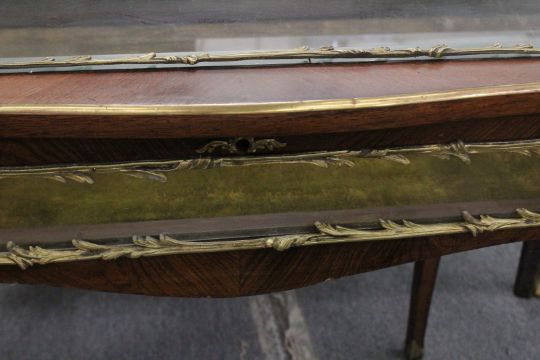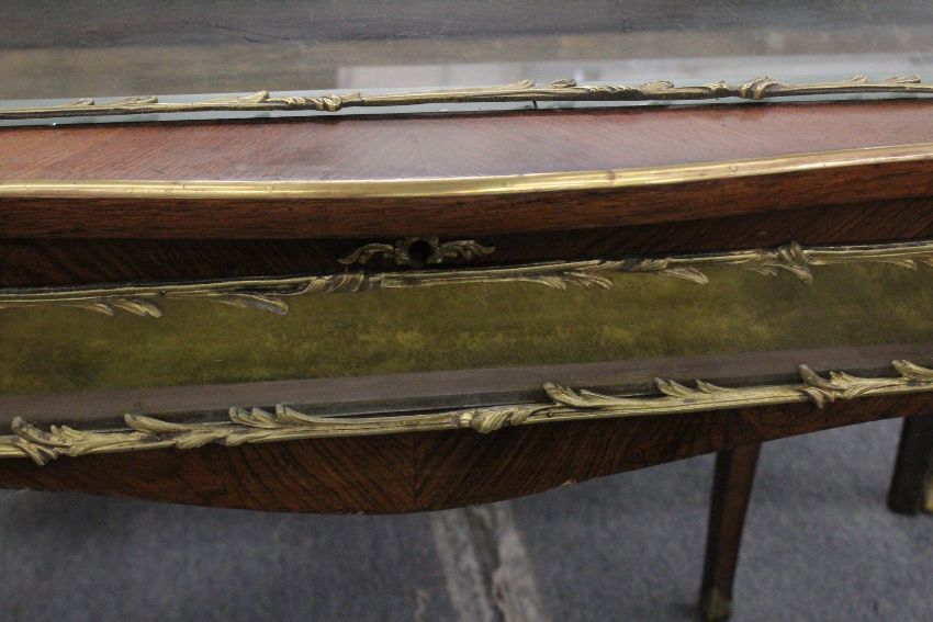 A GOOD 19TH CENTURY LOUIS XVITH DESIGN KINGWOOD AND ORMOLU VITRINE with glass top and sides. Velvet interior, on curving legs.