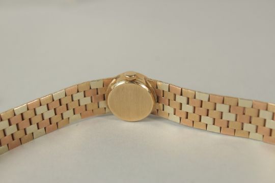 A 9ct GOLD BUECHE-GIROD WRISTWATCH AND BRACELET, with a spare bracelet.