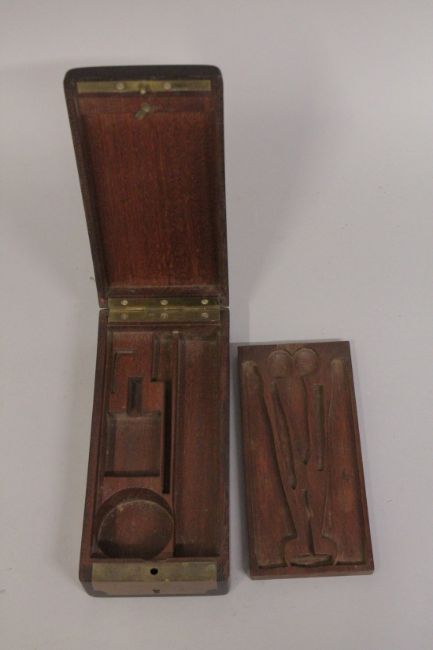 A 19TH CENTURY MAHOGANY FITTED BOX.