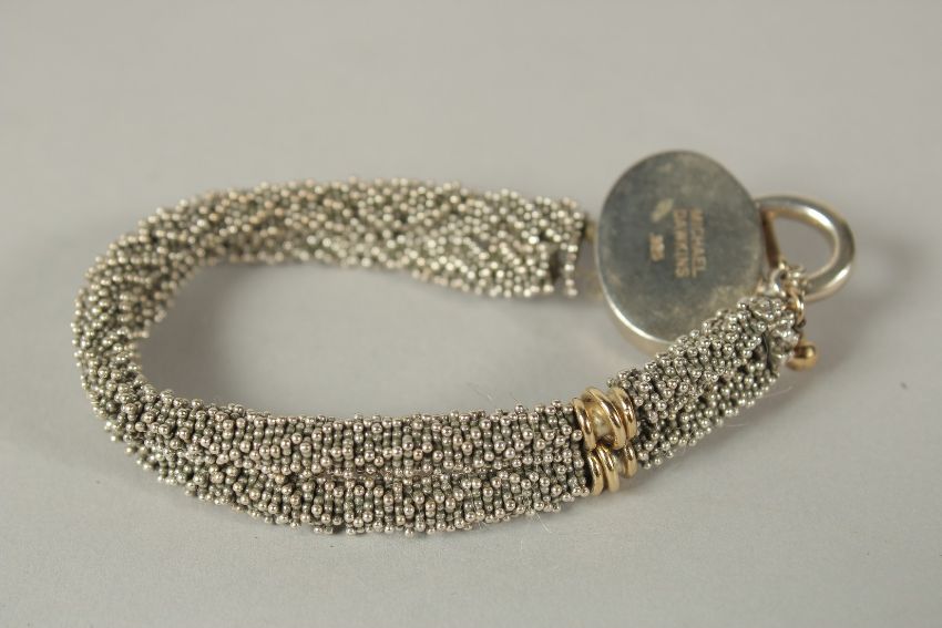 A MICHAEL DAWKINS SILVER AND PEARL BRACELET.