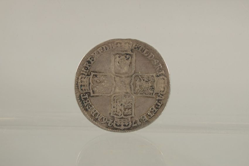 A GEORGE II OLD HEAD HALF CROWN 1746. LIMA F to F
