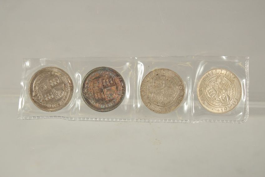 VICTORIA JUBILEE AND WIDOW HEAD SHILLINGS (4).