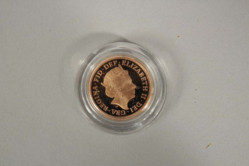 2019. A FULL GOLD PROOF SOVEREIGN in capsule FDC with wooden box and COA plus outer.