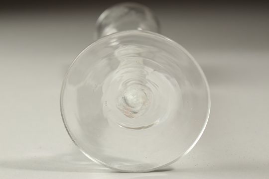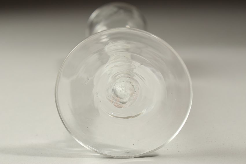 A GEORGIAN WINE GLASS, the bowl engraved with roses and opaque twist stem.