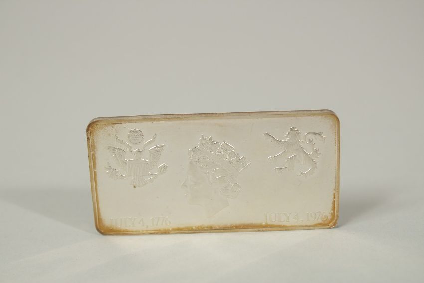 A SILVER INGOT. In Commemoration of the State Visit of Queen Elizabeth II to the United States, boxed.