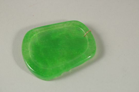 A GOLD RING APPLE GREEN JADE PENDANT.