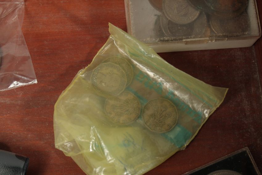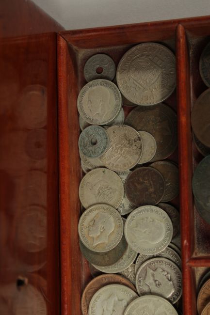A BOX OF VARIOUS COINS.