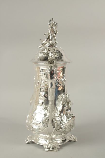 A GOOD W.A.F. SILVER PLATED STEIN with classical figures.