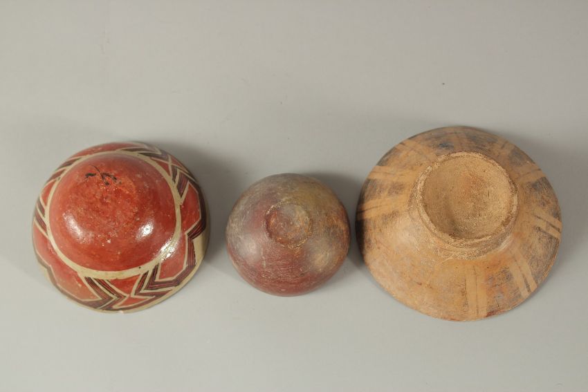 A COLLECTION OF THREE ISLAMIC NORTH AFRICAN POTTERY BOWLS, largest 13cm diameter, (3).