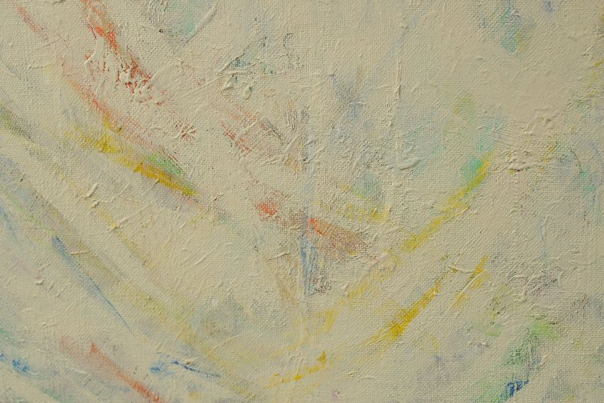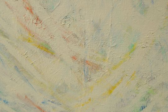 MUBIN ORHON (1924-1981) - TURKISH ARTIST: untitled abstract study in white, painted on canvass, signed and dated 'Mubin 1961' lower right, the verso inscribed 'Mubin Orhon Paris 1961 Mubin', framed -unglazed, painting 80cm x 60cm.