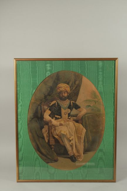 SIDNEY HALL: A LATE 19TH CENTURY LITHOGRAPH OF HIS HIGHNESS THAKORE SAHAB OF MOZUI, framed and glazed, image 59cm x 45cm.
