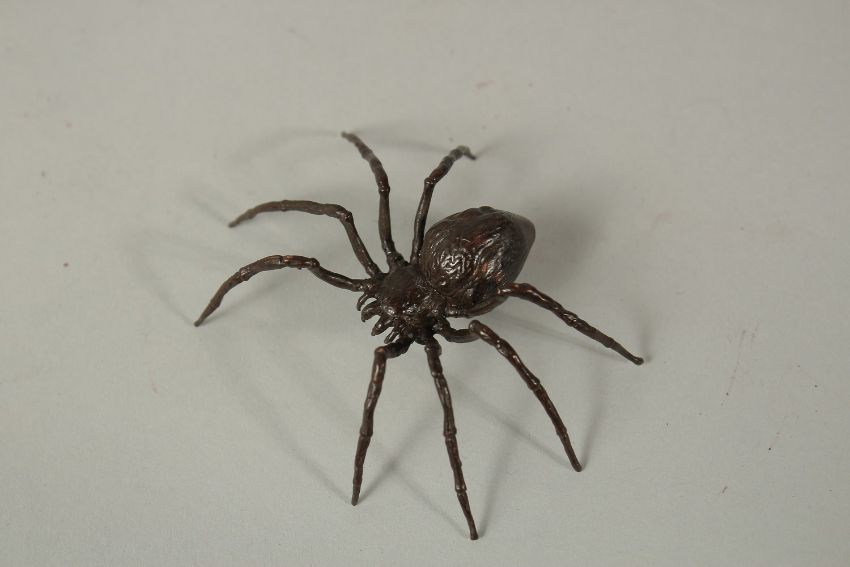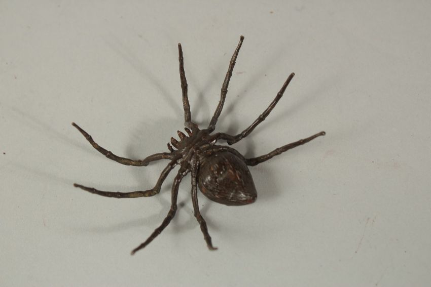 A BRONZE OKIMONO OF A SPIDER, 7cm wide.