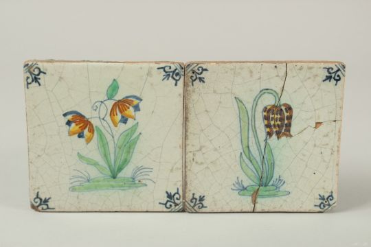 TWO 18TH CENTURY DELFT TILES, 13cm square each.