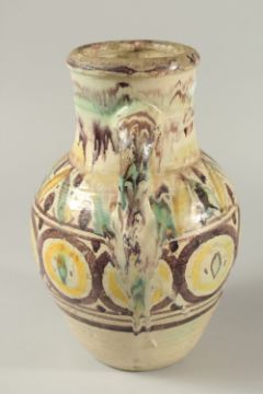 AN 18TH CENTURY NORTH AFRICAN TUNISIAN QALLALINE GLAZED POTTERY JAR.