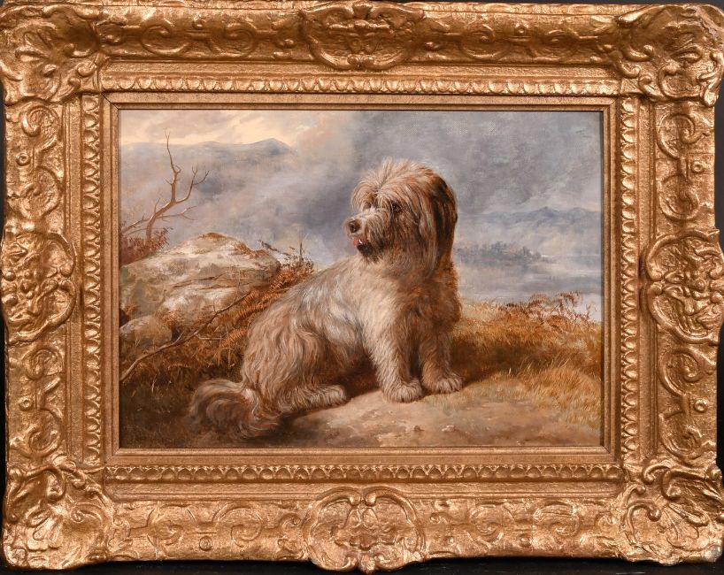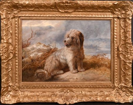 19th Century English School, seated dog in landscape shrouded with mist, oil on canvas, indistinctly signed and dated, 12" x 16" (30 x 40cm).
