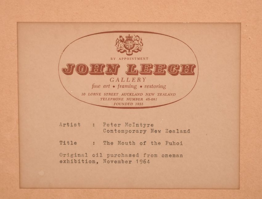 Peter McIntyre (1910-1995) New Zealand, 'The Mouth of the Puhoi', an estuary landscape view, oil on board, signed, label verso, Circa 1964, 25" x 27.5" (64 x 70cm).