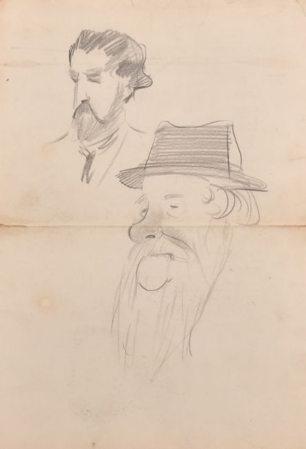 Bruce Bairnsfather (1888-1959), a pair of head studies, a collection of head studies, pencil on the reverse of menus, one from the Caf Royal, each 15" x 10" (38 x 25cm), (2).