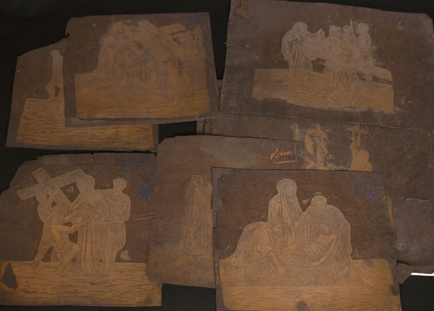 Continental School, 19th/20th Century, Stations of the Cross, a set of original prints in gold, possibly xylographs, each approximately 12" x 12" (30 x 30cm) unframed, a/f.