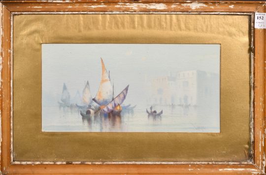 Attributed to Knox, a pair of watercolour scenes of boats around Venice, signed R. Cooper, each 7" x 13.75" (18 x 35cm).