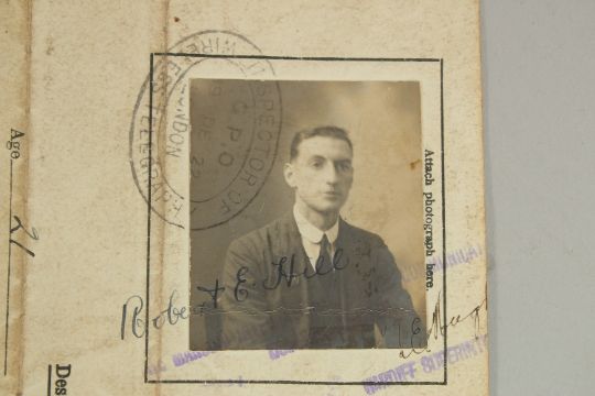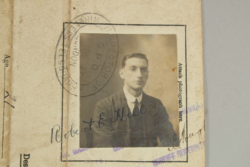ROBERT HILL, ROYAL ENGINEERS, SAPPER 457108. Paperwork including Certificate of Proficiency in Radiotelegraphy, Signed photo, Discharge Certificate, Letters in a wallet.