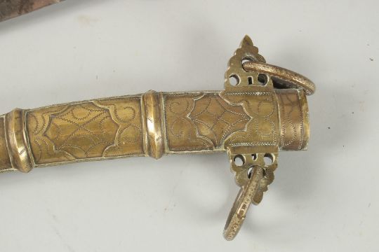 A VERY FINE 19TH CENTURY MOROCCAN KOUMAYA DAGGER, with enamelled silver decoration, 41cm long overall.