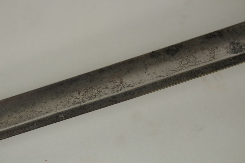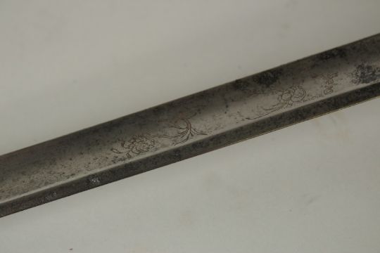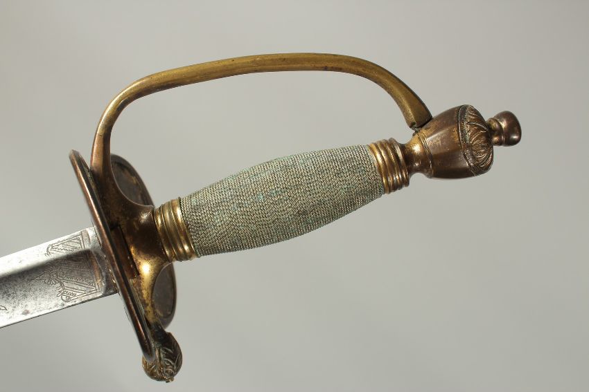 A 1796 UNUSUAL NAPOLEONIC OFFICER'S SWORD, etched blade with GRILLE CIPHER ROYAL COAT OF ARMS.