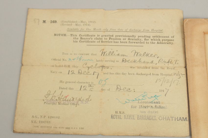 DECKHAND WILLIAM WALKER, R.N.R., O.N. 1501 D.A. NOTIFICATION OF MENTION IN DISPATCHES from The Lord Commissioners of the Admiralty, London Gazette, 2nd July 1917.