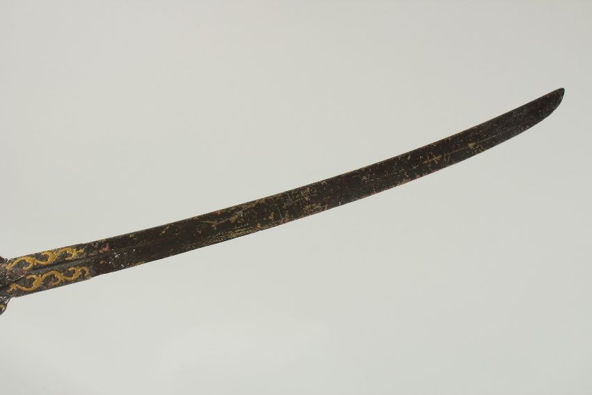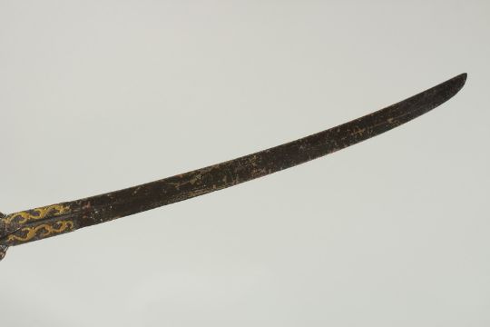 A CEYLONESE 18TH CENTURY SWORD with enamel head hummel and gilded blade.