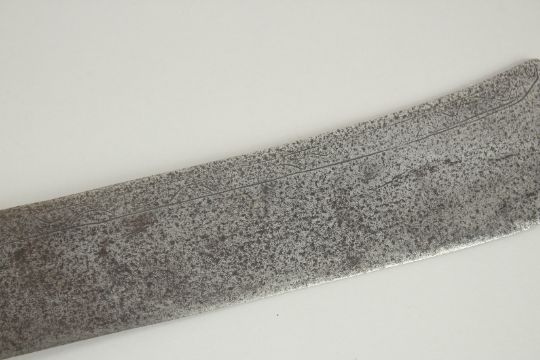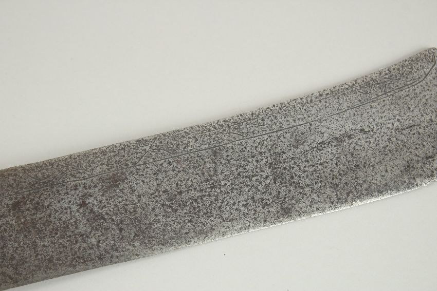 A FINE 19TH CENTURY CHINESE SWORD, with a wide engraved blade and fabric wrapped handle, 84cm long.