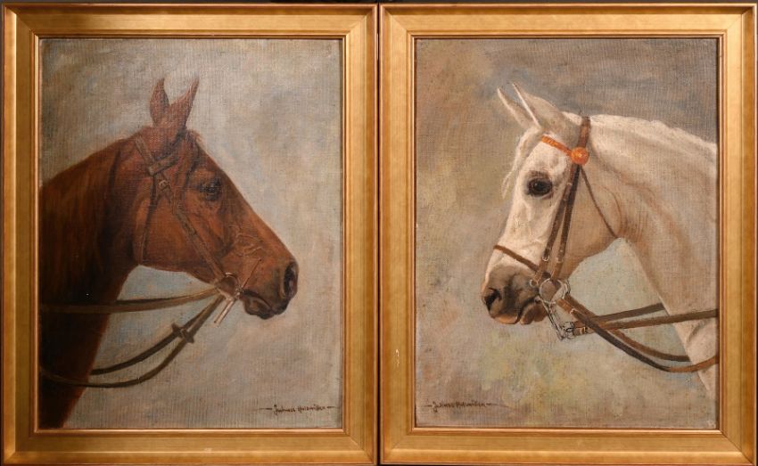 A pair of head studies of horses, oil on canvas laid down.