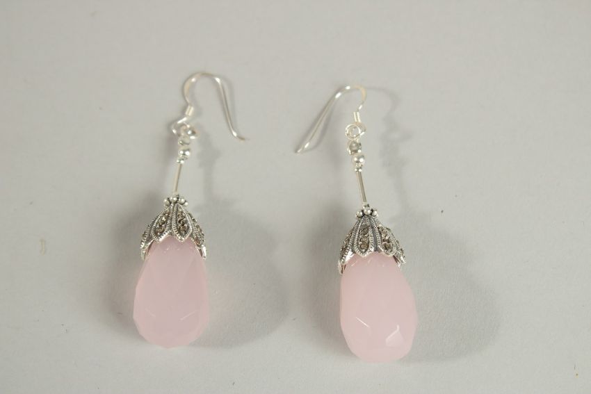 A PAIR OF SILVER AND ROSE QUARTZ EARRINGS