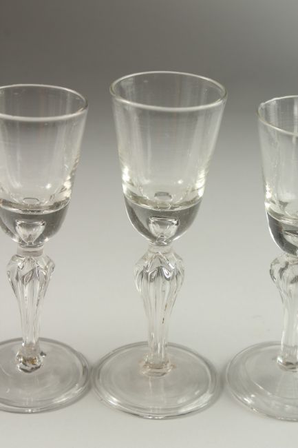 A SET OF SIX FUNNEL BOWL GLASSES on fold feet.