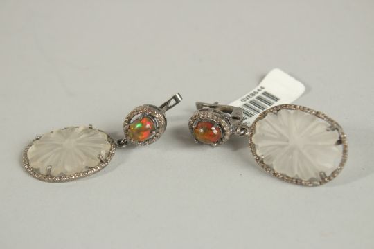 A PAIR OF CRYSTAL AND DIAMOND OPAL DECO STYLE EARRINGS.