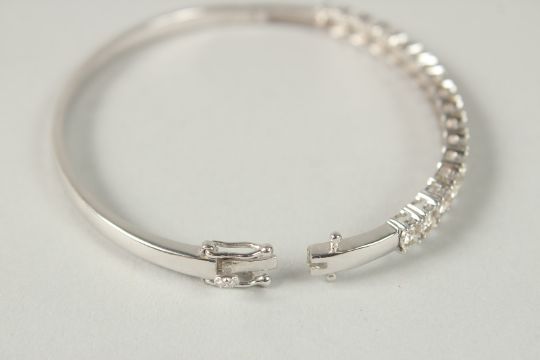 A 9CT WHITE GOLD HINGED BANGLE SET WITH 2.21 RBC DIAMONDS, with double safety catch.