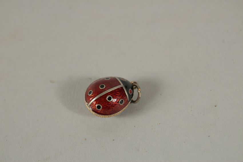 A SILVER AND ENAMEL LADYBIRD EGG PENDANT.