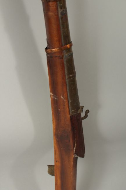 A LONG INDIAN MATCHLOCK RIFLE. Q186cm long.