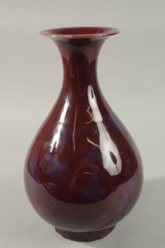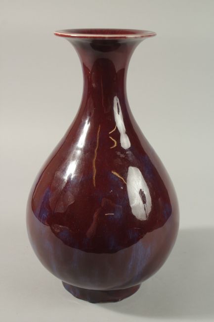 A LARGE CHINESE FLAMBE GLAZED PORCELAIN VASE, 35cm high.