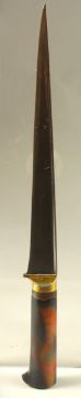 A FINE 19TH CENTURY OTTOMAN TURKISH AGATE HILTED WATERED STEEL DAGGER, with silver scabbard, 43cm long overall.