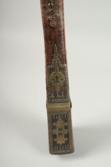 AN OTTOMAN BRASS MOUNTED RIFLE, 140cm long.