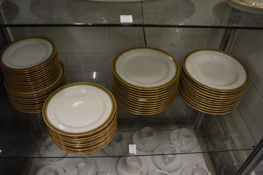 A comprehensive Lamoge gilt decorated dinner service.