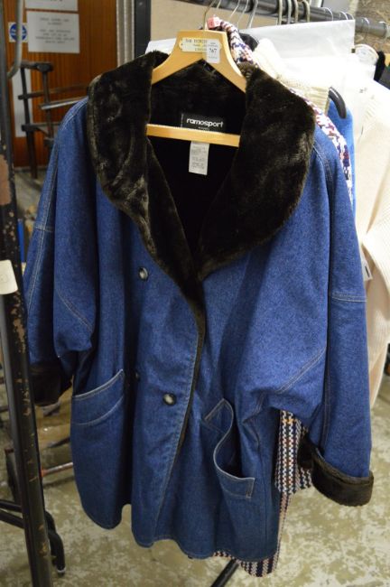 A ladies fur trimmed denim coat.