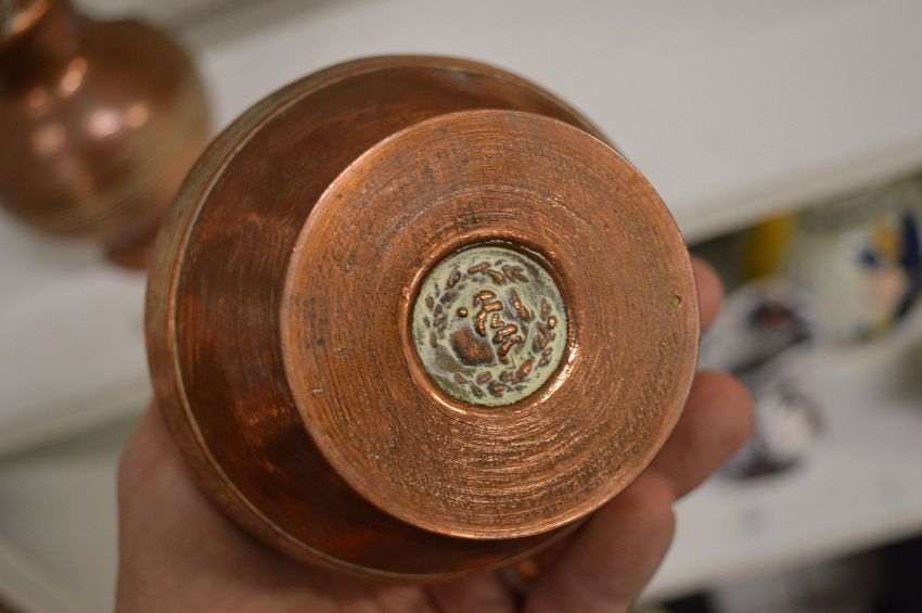 A pair of unusual copper jugs.