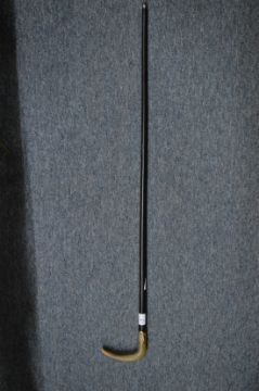 A good horn handled and gilt metal mounted walking stick.