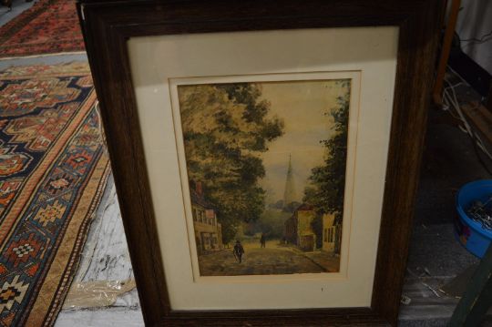 Four watercolours depicting rural scenes, uniformly framed and glazed.