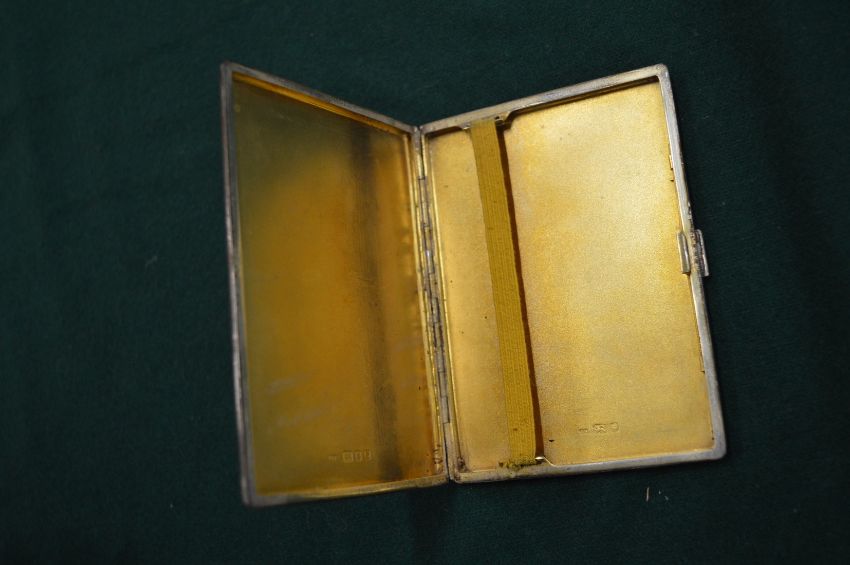 An engine turned silver cigarette case, the cover inlaid with enamelled A-Z flags.