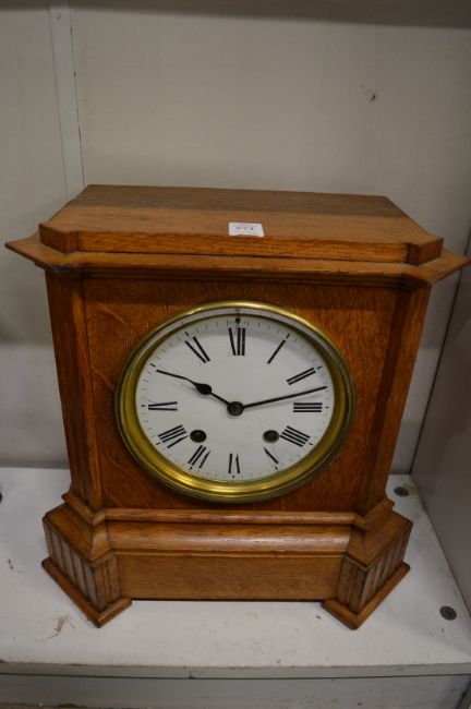 An oak cased mantel clock.