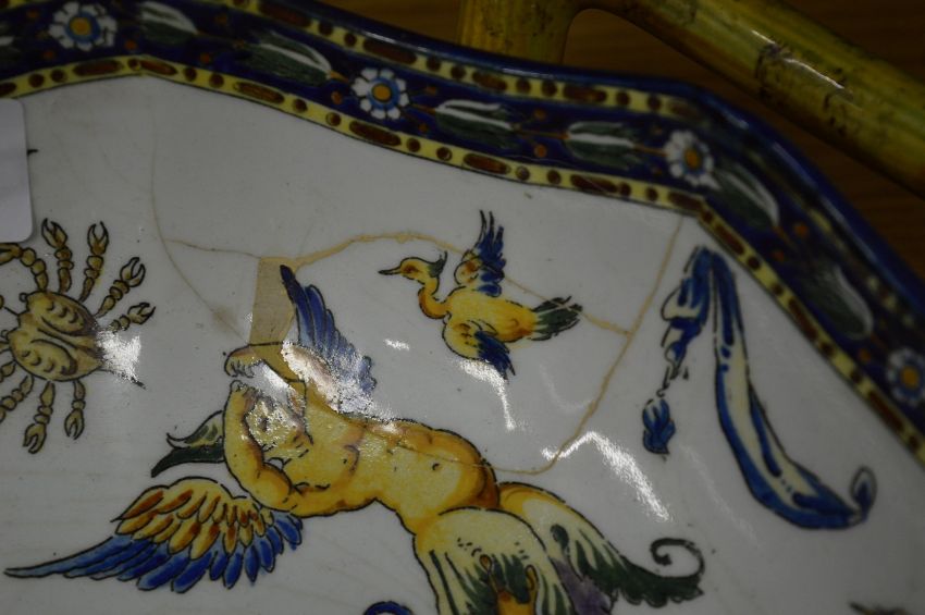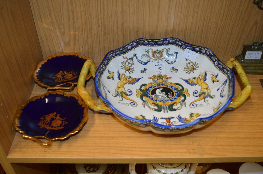 A Continental twin handled dish and a pair of other dishes.
