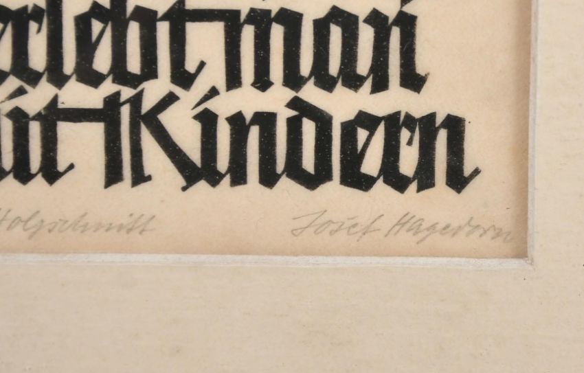 Josef Hagedorn (1914-2004), scene of a mother and her children, woodcut, signed and inscribed in pencil, 6.25" x 3.75" (16 x 9.5cm).